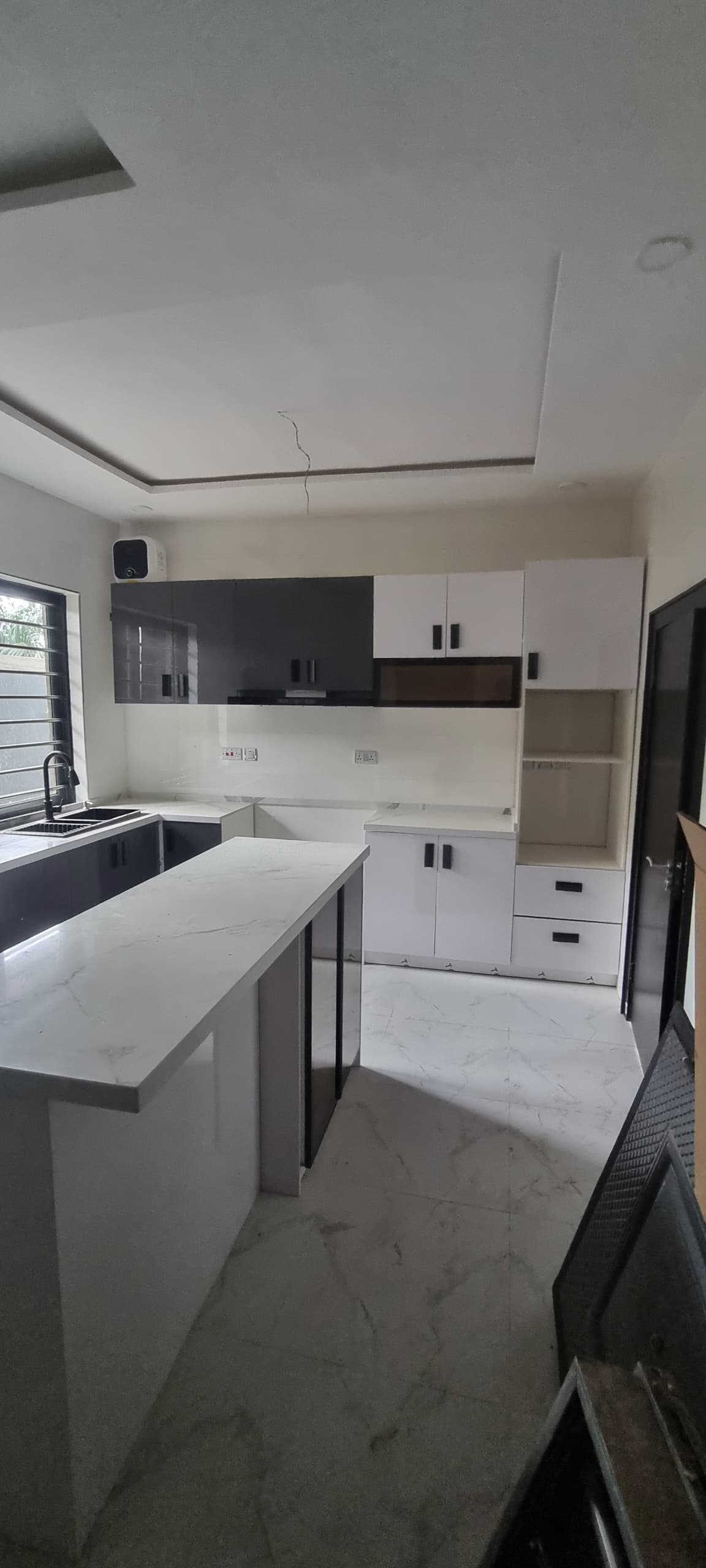 The fully fitted kitchen, equipped with top-grade appliances—including a heat extractor, gas burner, oven, microwave, and generous cabinet space—makes every cooking experience a pleasure. Adjacent to the kitchen, you’ll find a dedicated study room, ideal for remote work, homeschooling, or a quiet personal retreat.