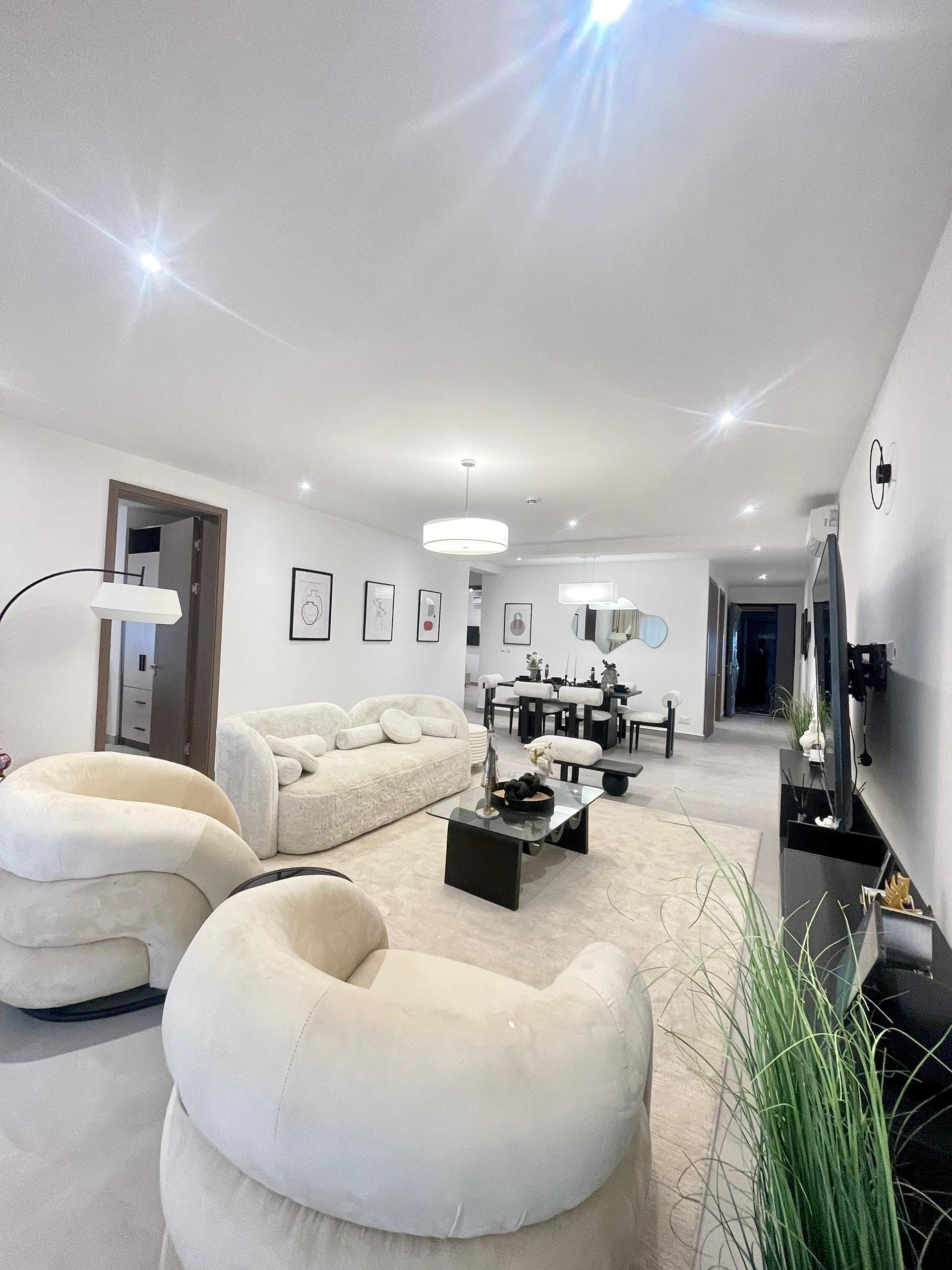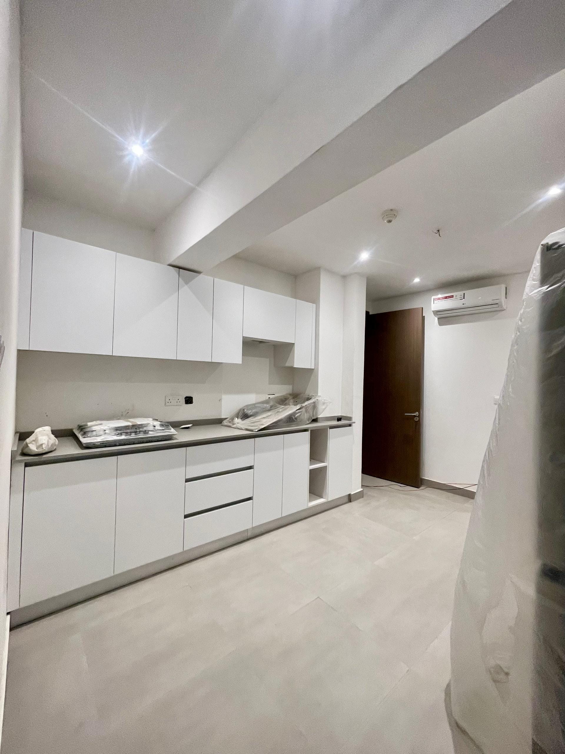Each apartment features contemporary architecture and premium-quality finishes that cater to the needs of both homeowners and investors. Designed with functionality and aesthetics in mind, the spacious living area flows seamlessly into a well-fitted kitchen equipped with high-end appliances including a microwave, oven, and water heater. The fitted wardrobes and stunning lighting fixtures further enhance the sense of refined living.
