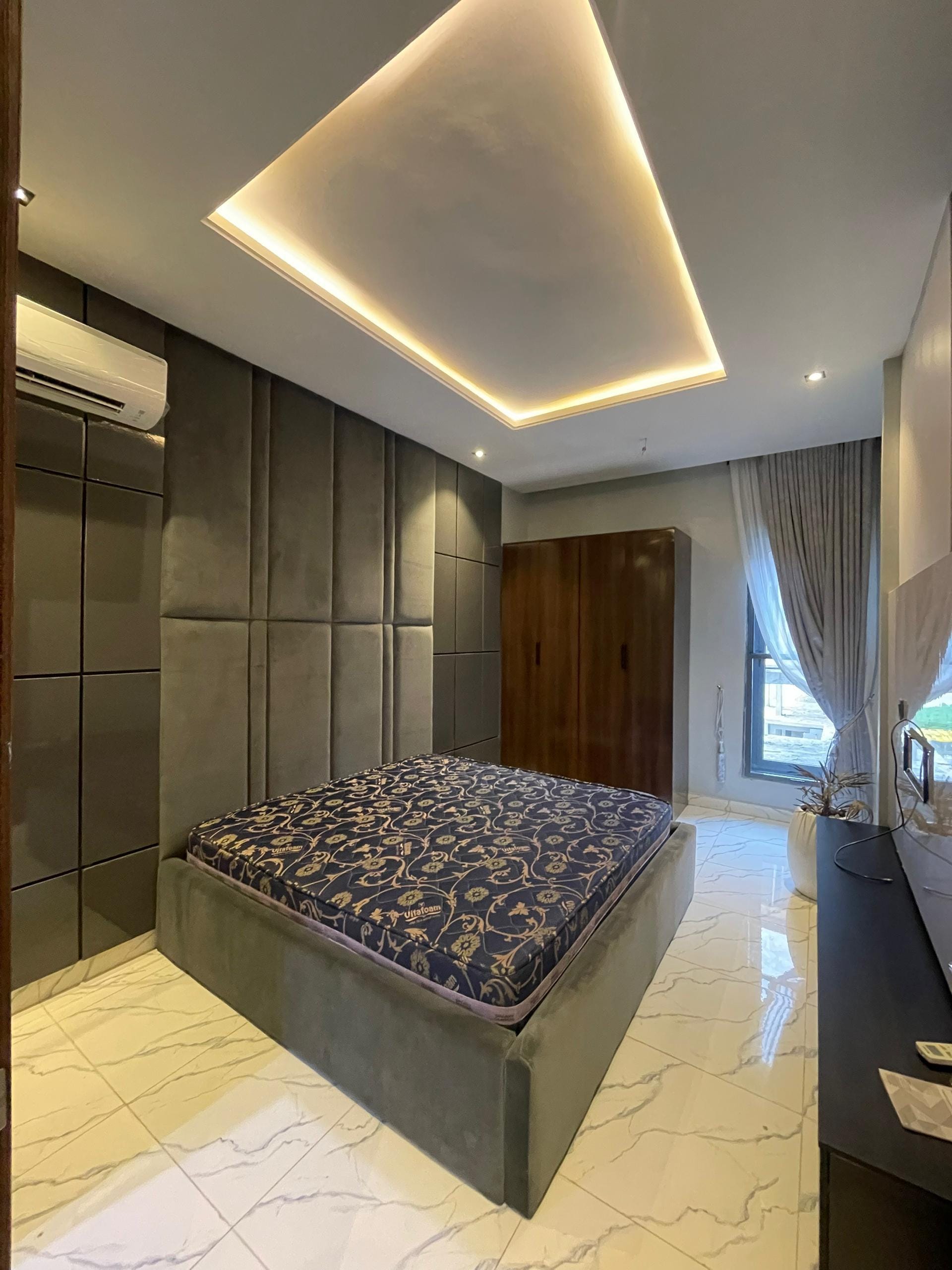 As you step inside, the penthouse welcomes you with a spacious open-plan living area that combines style and practicality. The modern-day POP ceiling and detailed finishing create a refined ambiance, while large windows allow natural light to fill the space, enhancing the home’s warm and inviting atmosphere.